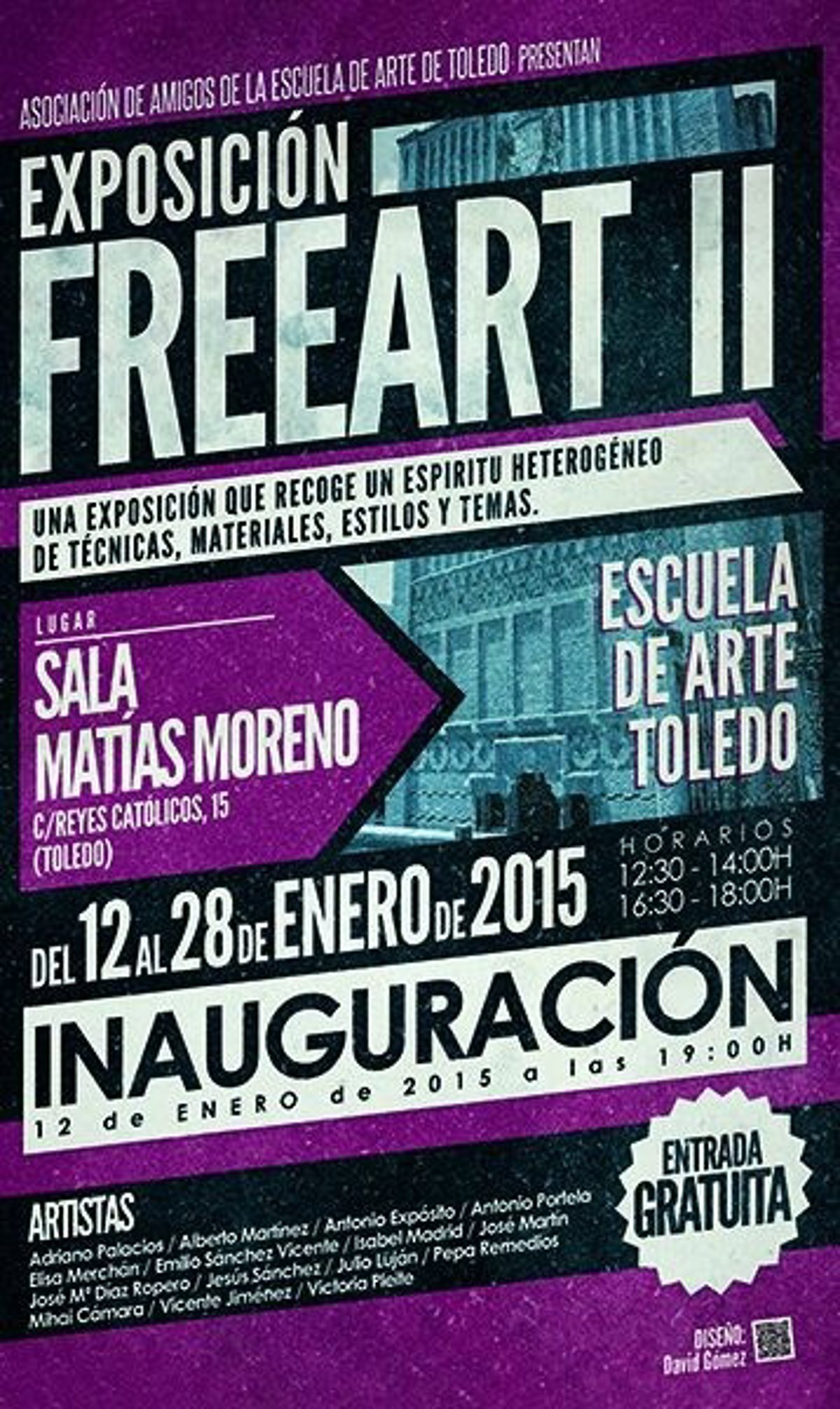 La Sala de Exposiciones 'Matías Moreno' de la Escuela de Arte de Toledo acogerá este lunes, 12 de enero, a las 19.00 horas la inauguración de la exposición 'FREEART' de la Asociación de Amigos de la Escuela de Arte Toledo.
