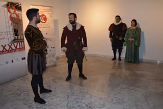El Centro Cultural San Clemente ha acogido la presentación de estas jornadas y el 433 aniversario de boda de Miguel de Cervantes y Catalina de Salazar, que ha contado también con una pequeña representación de la 'Escenificación de los desposorios de Miguel de Cervantes y Catalina de Salazar', que se podrá presenciar por las calles y plaza de Esquivias, a cargo de los actores y actrices, vecinos de la localidad.
