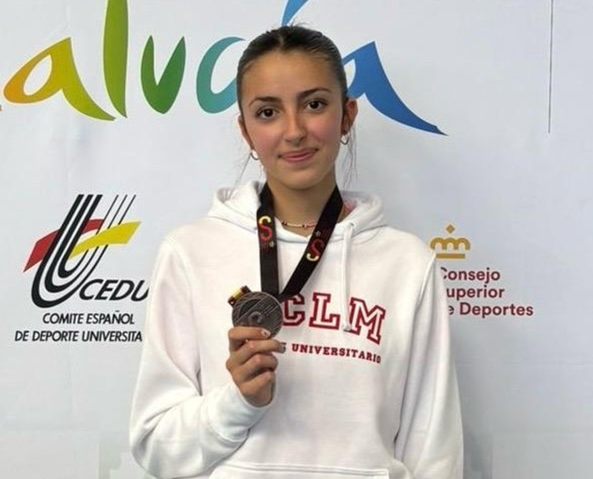 Lucía Jimeno Mora, estudiante de la Universidad de Castilla-La Mancha (UCLM) en el campus de Toledo, ha logrado la medalla de bronce en el Campeonato de España Universitario (CEU) 2026 de esgrima.
