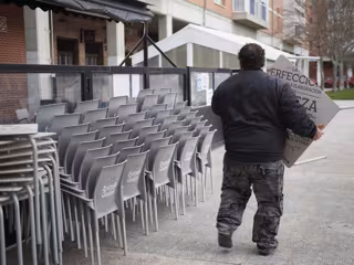 Archivo - Un camarero colocando las sillas de una terraza - Eduardo Sanz - Europa Press - Archivo