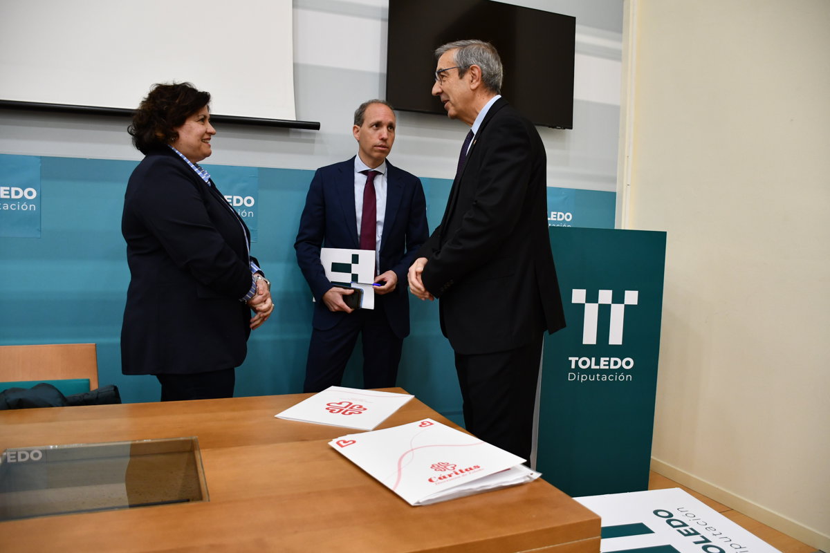 En rueda de prensa este lunes han desgranado los detalles del mismo el vicepresidente de Bienestar Social, Familia y Juventud de la Diputación, Daniel Arias; la secretaria general de Cáritas Diocesana de Toledo, Mónica Moreno; y el director de Caritas Diocesana de Toledo, José Luis González.