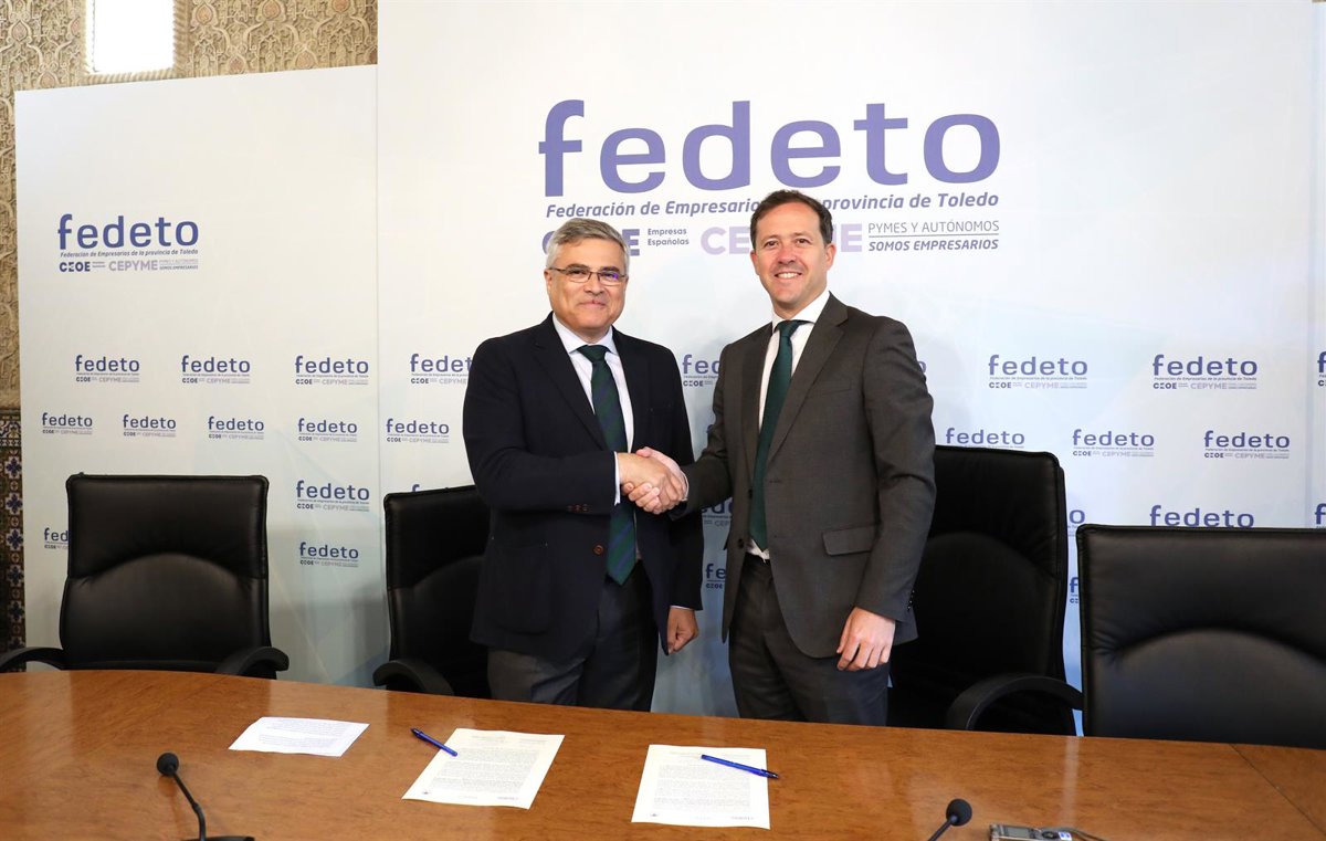 El presidente de Fedeto, Javier de Antonio Arribas, y el alcalde de Toledo, Carlos Velázquez - OSCAR HUERTAS/AYUNTAMIENTO DE TOLEDO