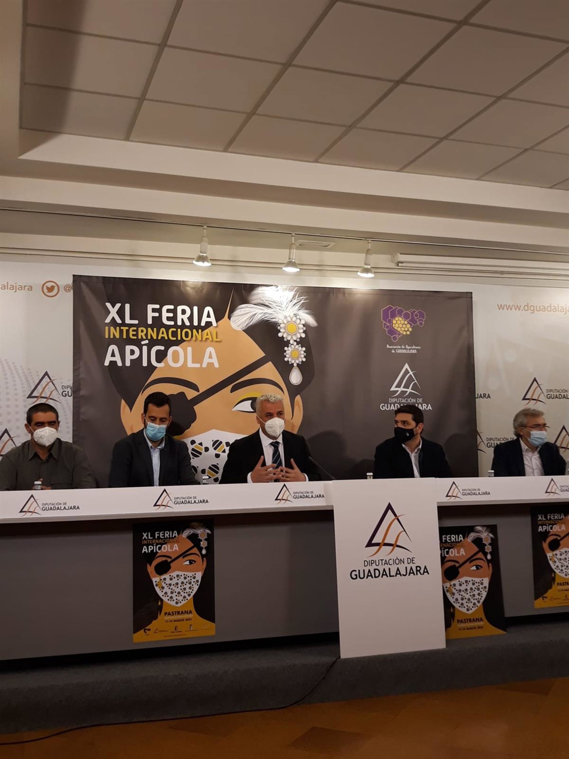 Se trata de la XL Feria Apícola de Pastrana, una muestra que ha sido presentada este jueves por el presidente de la Diputación, José Luis Vega; el diputado provincial de Agricultura y Ganadería, Héctor Gregorio; el alcalde de Pastrana, Luis Fernando Abril; el presidente de la Asociación de Apicultores de Guadalajara, Ángel Marco, y el responsable técnico de la plataforma online feriaapicolapastrana.com, Julio Marian, y que ya ha levantado muchas expectativas.