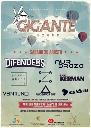 En el 'Gigante Sound' podrán verse las actuaciones de grupos como Maldivas, Veintiuno o los dj's criptanenses 'Josephije dj' o 'Modernos dj's', entre otros.