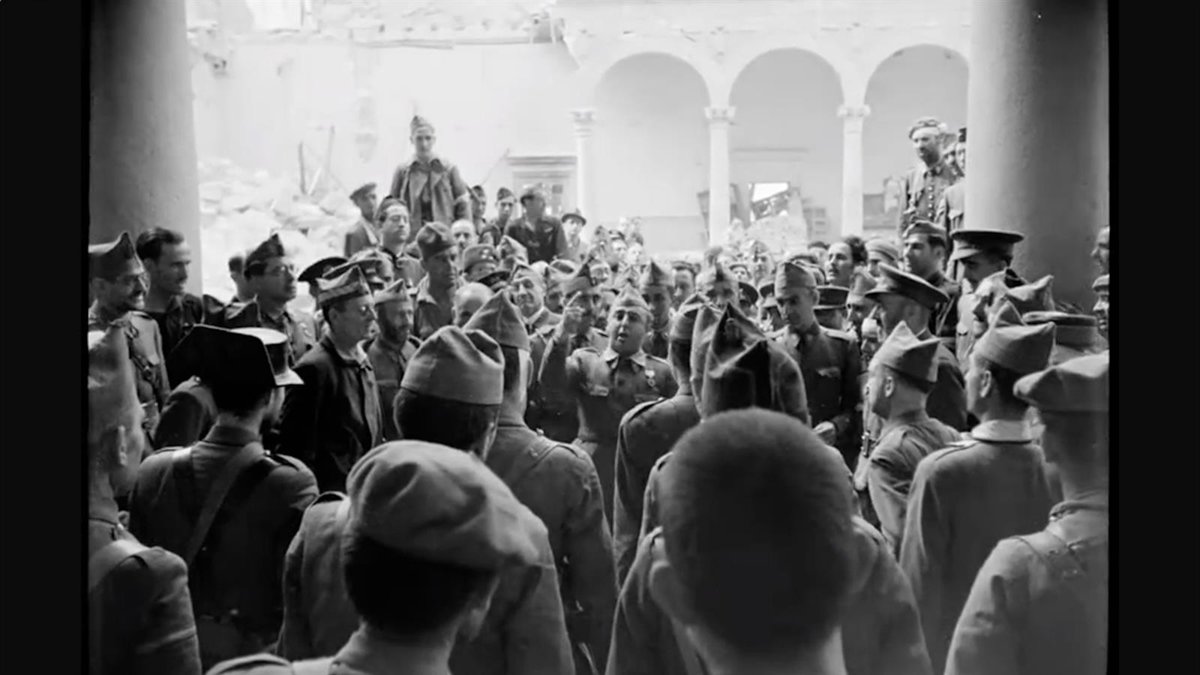 En la grabación es visible también la arenga de Francisco Franco al entrar en el baluarte, siendo reconocibles varias personas de su confianza, entre las que podemos destacar a José Millán-Astray.
