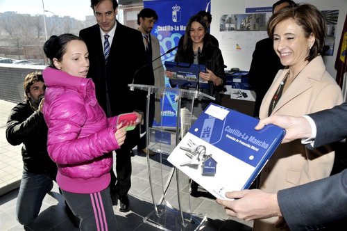 Así se ha pronunciado durante la entrega de las llaves de 136 viviendas de Promoción Pública en el barrio Santa María de Benquerencia (Toledo), donde las familias han recibido sus nuevos hogares adjudicados en tres tipos de régimen de propiedad: alquiler con opción a compra para los jóvenes, alquiler de renta básica con opción a compra, y alquiler de renta concertada sin opción a compra.