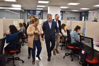 García Élez ha realizado esta visita al 'contact center' acompañada por el delegado del Gobierno regional en Talavera, David Gómez; así como por el director general de Acierta Asistencia, Ignacio Díaz-Pinés.