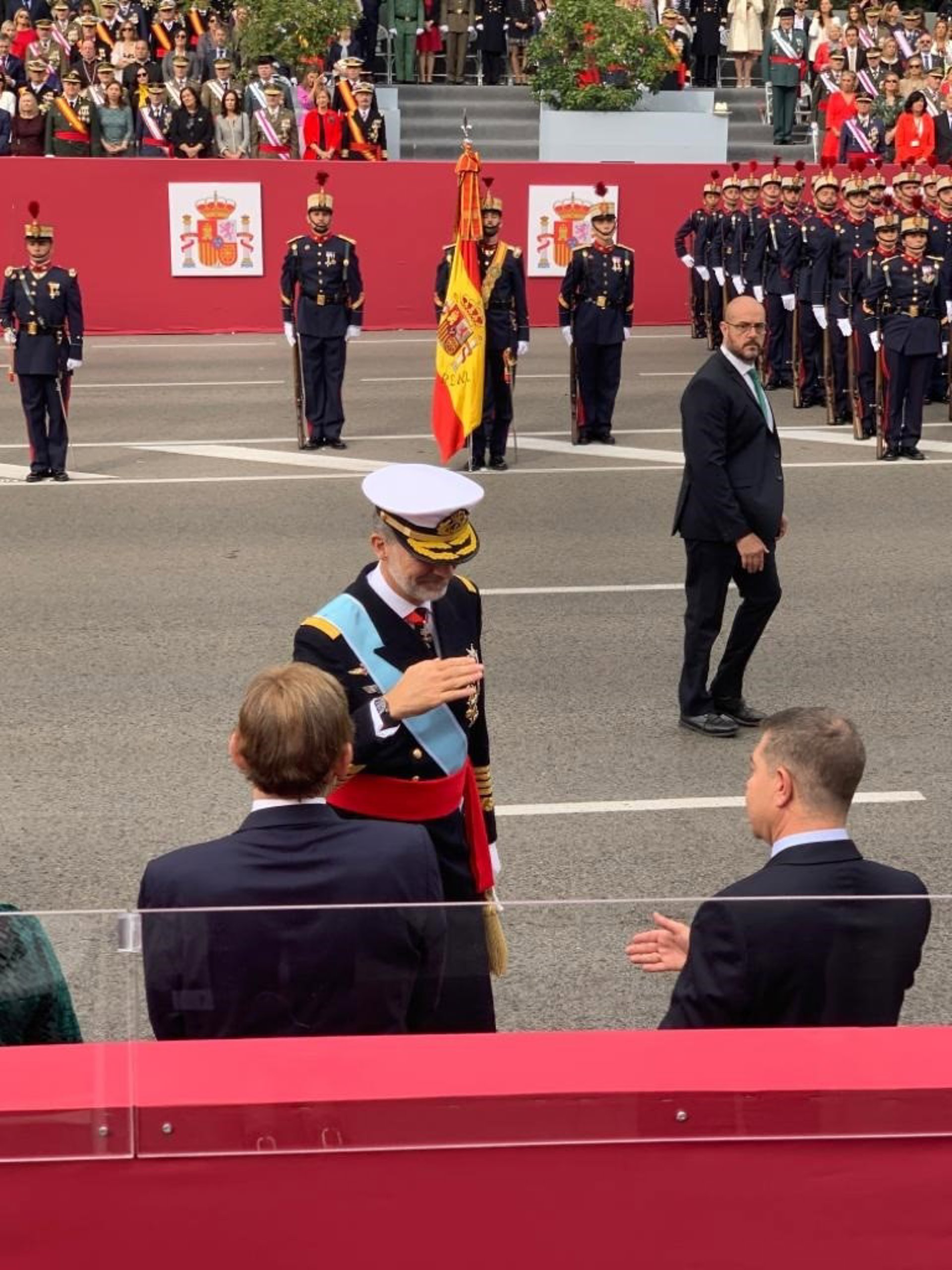 El rey saluda al presidente de C-LM, Emiliano García-Page, en los actos del Día de la Hispanidad. - JCCM
