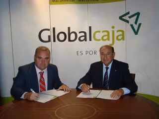 El copresidente de GlobalCaja, Higinio Olivares, y el vicepresidente de la Diputación Provincial de Albacete y consejero delegado del Instituto Técnico Agronómico Provincial de Albacete, Constantino Berruga, han firmado un convenio de colaboración, en la sede de la entidad crediticia en Albacete, por el que GlobalCaja colaborará con el ITAP en todo lo relacionado con la Lonja Agropecuaria de Albacete y con el patrocinio de diversos eventos.
