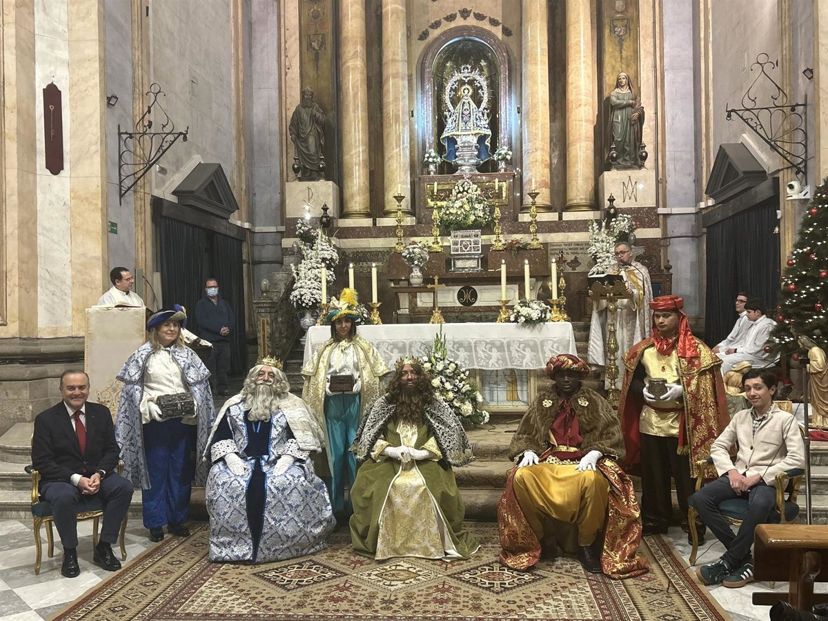 El alcalde de Talavera de la Reina junto a los tres Reyes Magos en la Basílica de Nuestra Señora del Prado. - AYUNTAMIENTO
