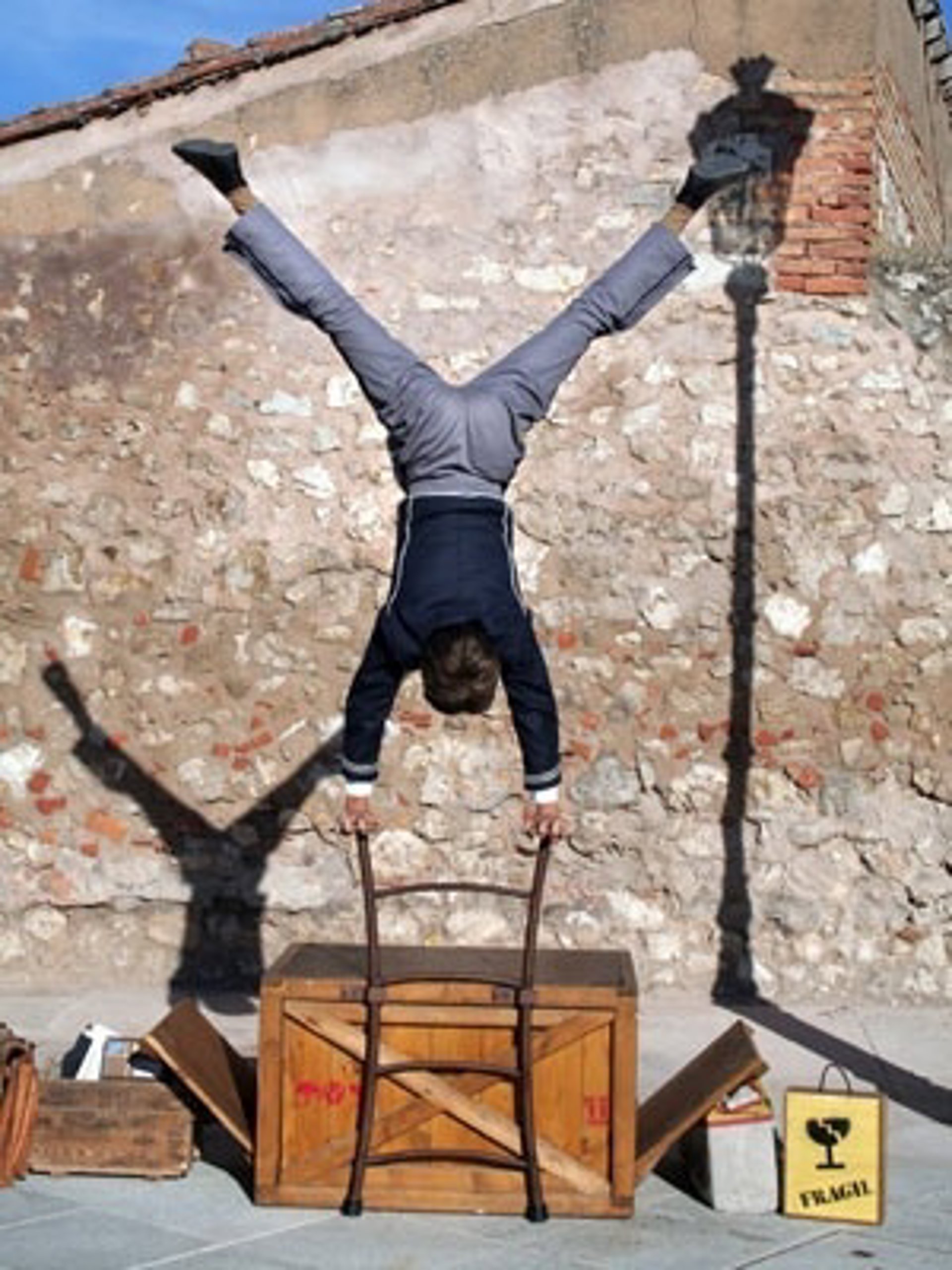 Para ello utiliza variadas técnicas de circo, escalera libre, manipulación de objetos, malabares de rebote y un sinfín de soluciones para los conflictos que se plantean, que le llevaran incluso a introducirse dentro de un globo gigante.