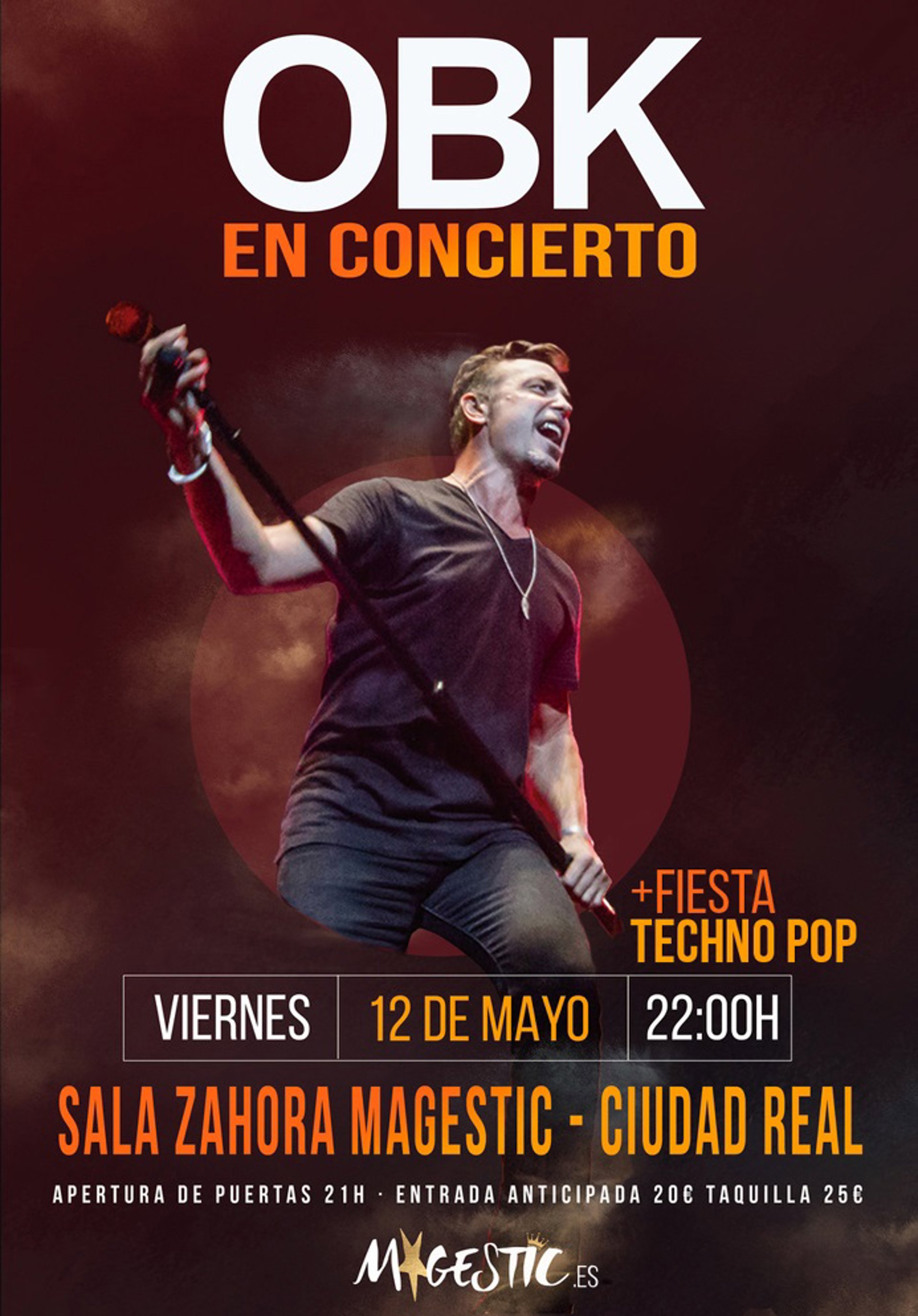 El próximo viernes 12 de mayo OBK hará bailar y corear sus míticos temas en la sala Zahora Magestic de Ciudad Real. El público ciudadrealeño podrá disfrutar de "su mejor directo techno pop" con temas como 'Historias de amor', 'El cielo no entiende', 'La princesa de mis sueños' o 'Falsa moral'.