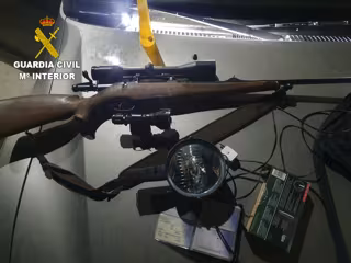 Tras realizar un registro del vehículo se halló un arma larga municionada y dispuesta para su uso, equipada de visor y foco luminoso de gran potencia, así como un ejemplar de corzo macho, recién abatido, sin el correspondiente precinto identificativo, de colocación obligatoria para justificar su legal procedencia, según ha informado la Guardia Civil en nota de prensa.