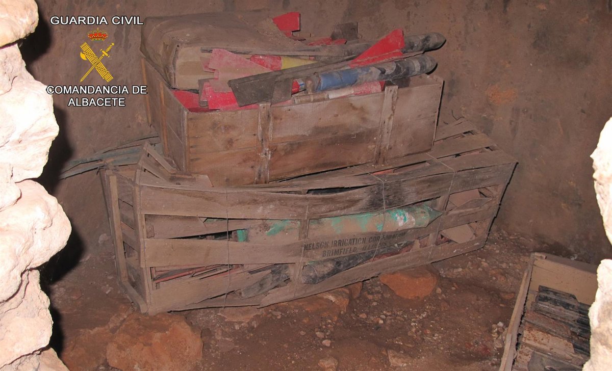 Técnicos en Desactivación de Explosivos (T.E.D.A.X.) de la Guardia Civil han desactivado 129 cohetes granífugos que fueron localizados por la patrulla del SEPRONA de la localidad de Aguas Nuevas en el interior de una construcción de piedra, conocida como 'cuco', de una finca del término municipal de Pozo Cañada.