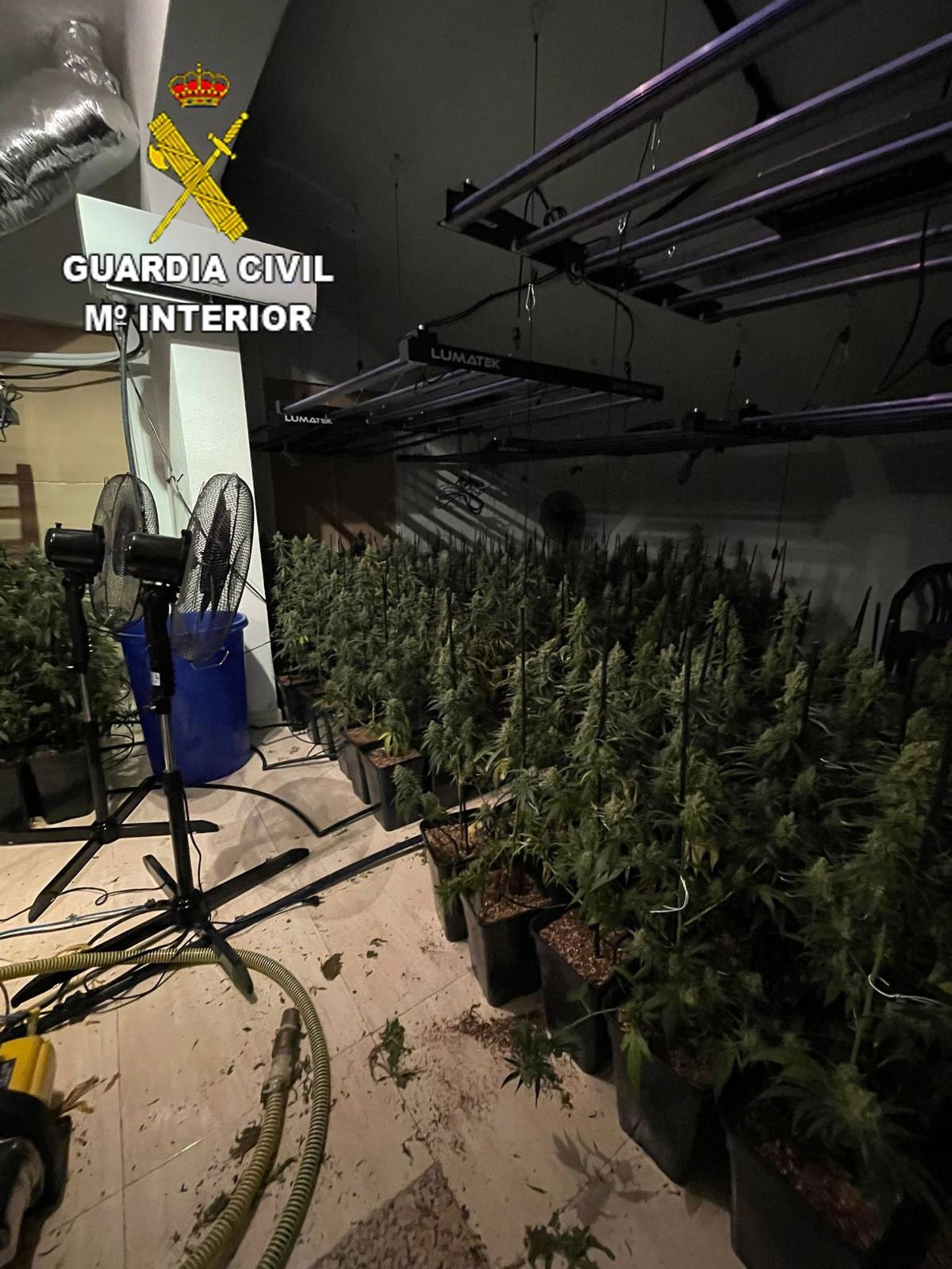 Los agentes han comprobado que toda la primera planta de esta construcción estaba habilitada para el cultivo intensivo de marihuana y que la instalación eléctrica de esta plantación era alimentada a través de un enganche ilegal de fluido eléctrico a la red general.