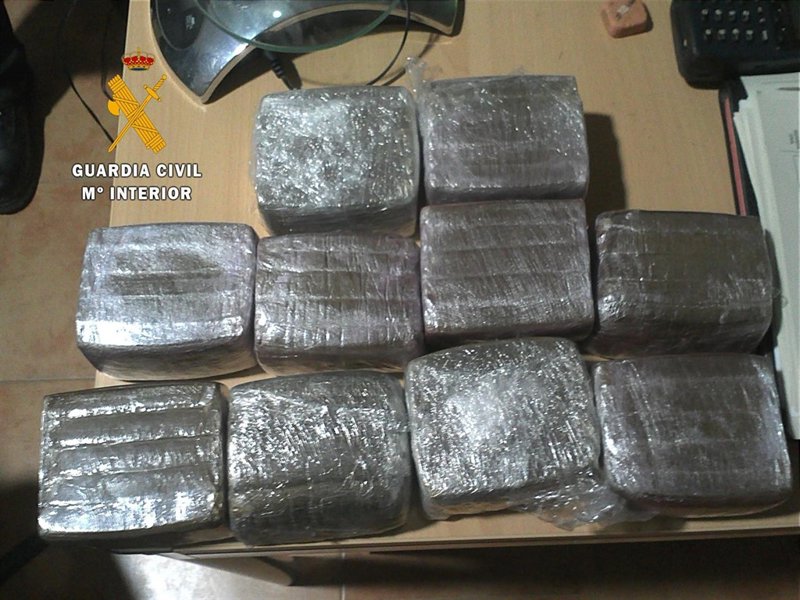 Dos agentes del Servicio Cinológico con sus respectivos canes, recorrieron el tramo de autovía por donde había circulado el vehículo, y tras recorrer unos dos kilómetros, la Guardia Civil localizó una bolsa de plástico blanca escondida entre la maleza que contenía 10 paquetes de hachís envueltos con plástico transparente, con un peso total de 5 kilogramos.