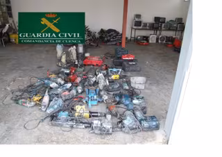 Entre el resto de efectos intervenidos destacan, seis estaciones topográficas más, 18 televisores, tres ordenadores portátiles, 32 motores de diversas marcas y potencia, 24 taladros, 22 amoladoras, seis generadores eléctricos, dos monitores, cinco martillos neumáticos, nueve bombas de agua y cinco motores eléctricos.