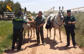Efectivos de la Guardia Civil de Almansa han recuperado dos equinos, un caballo y un asno, que se habían desbocado cuando caminaban junto a sus propietarios que realizaban el Camino de Santiago de Levante, perdiéndose después.