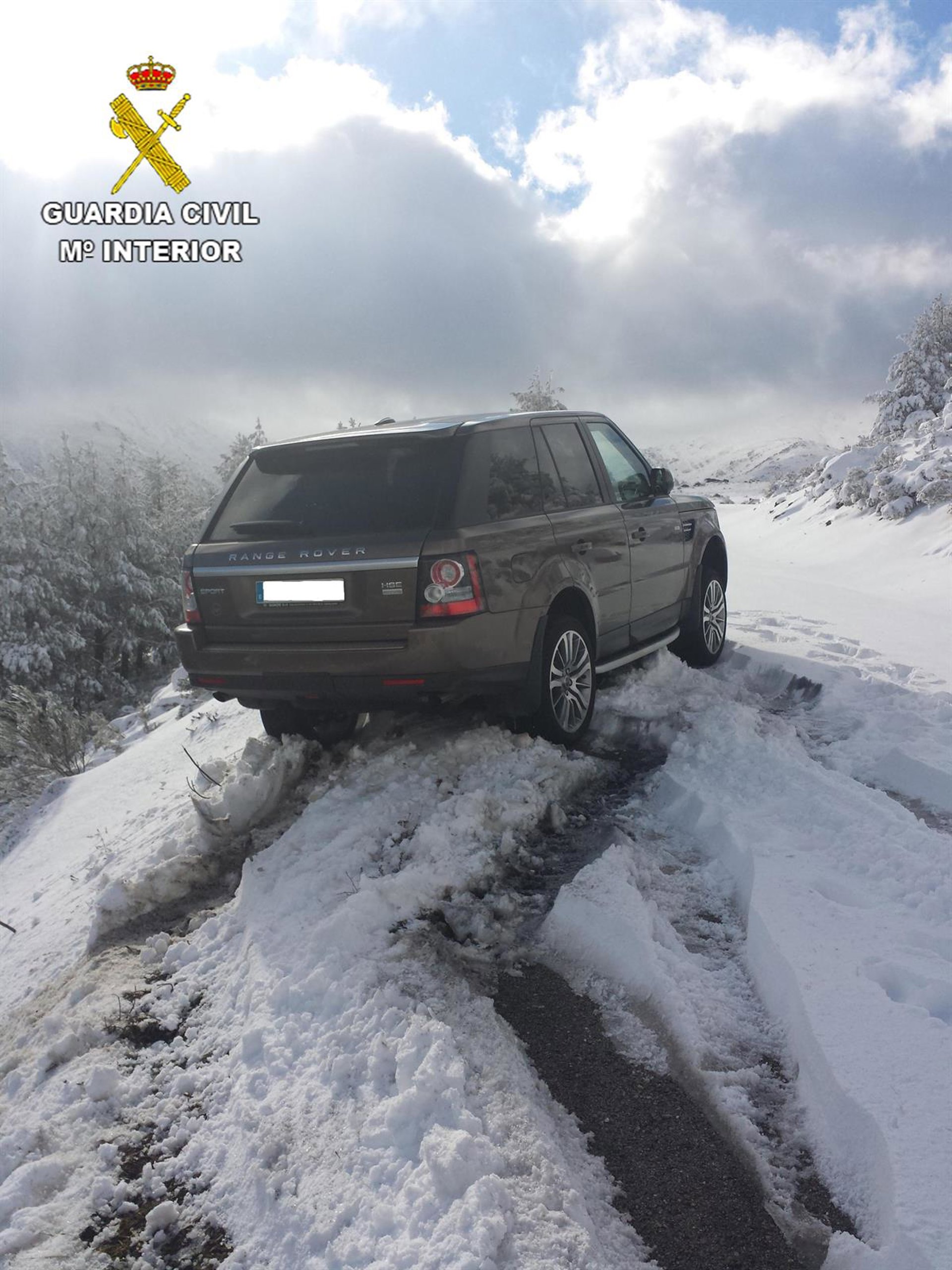 Según ha informado en nota de prensa la Delegación, una patrulla de la Guardia Civil se personó en el lugar de los hechos, tras una penosa conducción, por la existencia de abundantes placas de hielo y tramos con más de 30 centímetros de nieve, y comprobaron que efectivamente un vehículo todo terreno se encontraba atascado en la nieve con una persona en su interior, cuya rueda trasera izquierda estaba a escasos centímetros de un barranco.