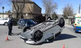 Una mujer ha resultado herida leve en un accidente con colisión ocurrido en el cruce de las calles Mas del Ribero con paseo del Circo Romano, junto a la basílica del Cristo de la Vega, en Toledo, que ha provocado el vuelco de uno de los vehículos implicados.