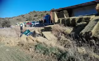 El accidente ocurría este jueves a las 8.00 horas en la en la N-322, a un kilómetro del término municipal de El Cubillo (Albacete), cuando el conductor del camión perdía el control produciéndose el vuelco completo de la carga sobre la carretera y desplazando al turismo fuera de la vía, dejándolo cubierto por completo.