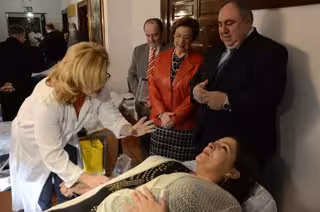 Los diputados del Grupo Popular Cesárea Arnedo y Francisco Cañizares han sido los primeros en animarse a donar sangre, además de una trabajadora de las Cortes.