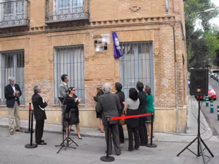 El acto ha consistido en el descubrimiento de una placa en la fachada de la que fue su casa natal, situada en la calle Manuel Medrano. El mismo ha estado presidido por sus hijos, Celia, Delia y Daniel, y el alcalde, Antonio Román.