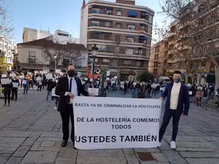 Unas 200 personas del ramo de la hostelería se han concentrado este viernes frente al Ayuntamiento de Puertollano (Ciudad Real) para visibilizar su "desesperada" situación ante las restricciones impuestas por los decretos aprobados para rebajar la incidencia de la epidemia.