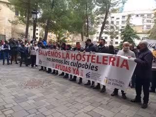 En el lema principal de la concentración que se ha podido leer en la pancarta principal que los hosteleros han mostrado ante el Ayuntamiento figuraba "Salvemos la hostelería. No somos culpables ¡Ayudas ya!".