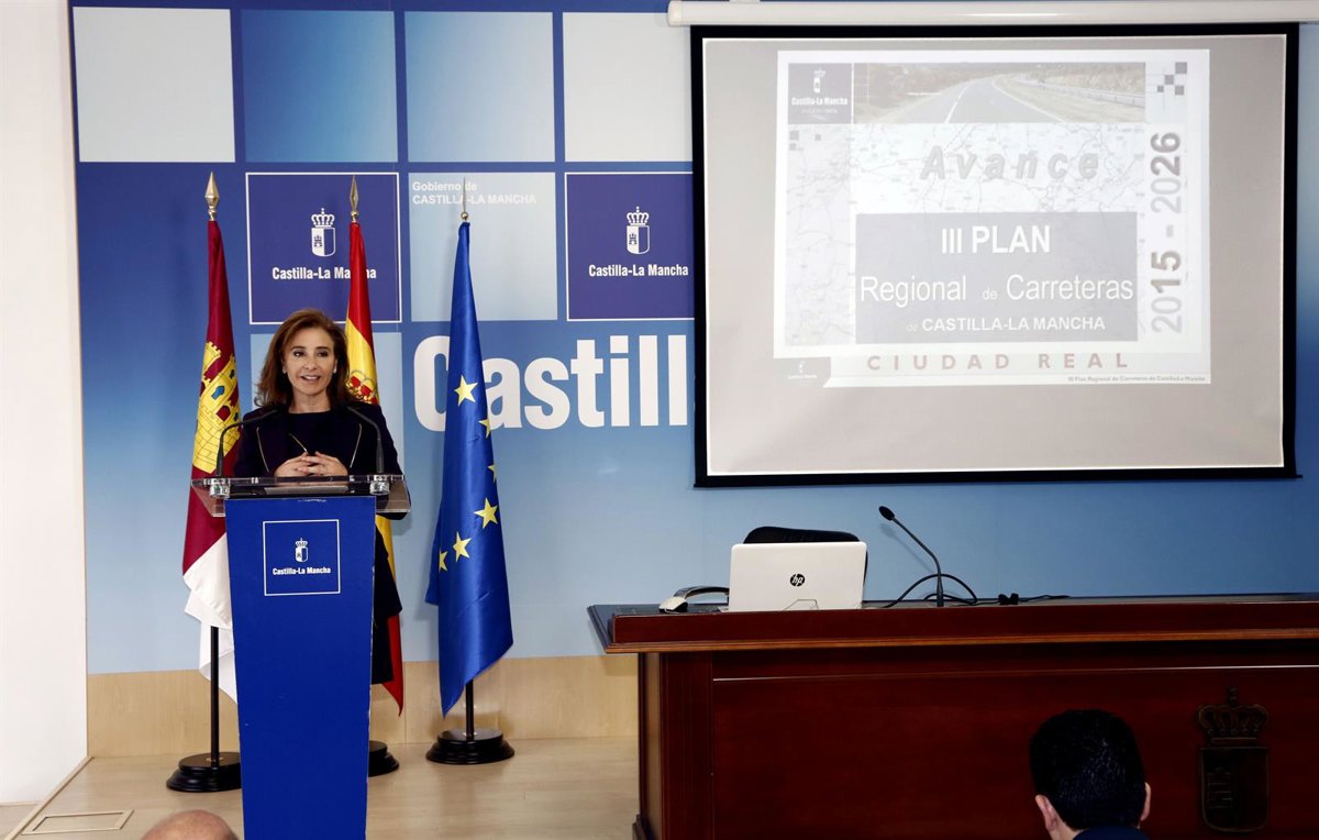 La consejera ha avanzado que también se acometerán obras de acondicionamiento, ensanche y mejora, entre ellas en la zona del campo de Montiel, como el tramo entre Albaladejo y Villanueva de la Fuente; en las comarcas de La Mancha y de los Montes; se abordará la modernización de la carretera entre Daimiel y Puerto Lápice, una de las vías con mayor tráfico de la provincia; la actuación sobre la carretera que une Caracuel-Villamayor- Brazatortas, o la intervención en otras carreteras comarcales y locales sobre las que no se había actuado en los anteriores planes, como en el caso de la que une Picón y Alcolea de Calatrava.