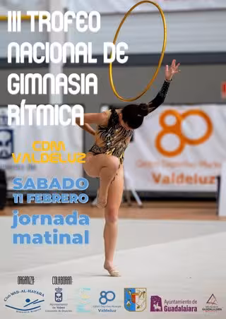El III Trofeo Nacional de Gimnasia Rítmica Yebes-Valdeluz reúne este sábado a 25 clubes de Castilla-La Mancha, Madrid y Canarias. Se disputa en horario de 9.00 a 15.00 horas en las modalidades de individual (categorías promesas, preferente B, base y absoluto), conjuntos (base y preferente) e individual masculino (absoluto).