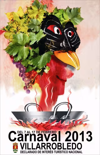 Iñaki Fernández Iturmendi, ha sido el ganador del cartel anunciador del carnaval de adultos en su edición 2013, por su trabajo 'Algo se cuece en Villarrobledo', que está realizado como un collage, en el que pueden apreciarse elementos típicos de este carnaval, como el pico de los Juanes, las uvas de la ciudad o una sartén, imprescindible para el concurso de gachas manchegas. El autor recibirá un premio de 400 euros en metálico.