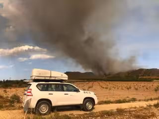 El incendio declarado en la pedanía hellinera de Agramón ha alcanzado el nivel 1 de alerta, ya que ha obligado a cortar la carretera que une esta pedanía con Hellín.