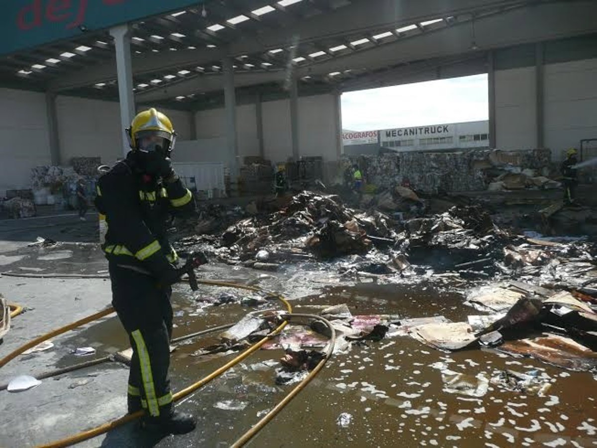 Bomberos del servicio de Emergencia Ciudad Real ha intervenido este lunes en las labores de control y extinción de un incendio que ha arrasado una nave de papel y cartón destinados a reciclaje de la empresa Defesa Recuperaciones Castilla-La Mancha, en el Polígono Industrial La Vega de Torralba de Calatrava (Ciudad Real).