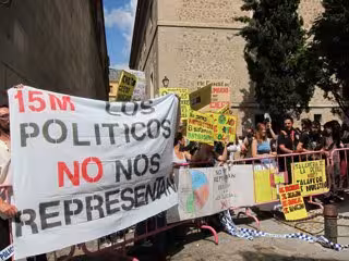 Los 'indignados' que portaban pancartas en las que se podía leer 'Los político no nos representan' o 'No nos representan... reforma de la Ley Electoral', han explicado en declaraciones a los medios que hacen ruido para que los políticos no se olviden que "tienen cosas que hacer" y denunciar que "se han olvidado del pueblo".