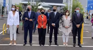 La ministra de Industria, Comercio y Turismo de España, Reyes Maroto, junto a otras autorizadas en un acto en Amazon, en Illescas (Toledo). - EUROPA PRESS