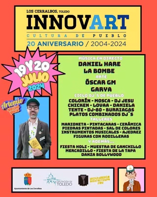 El Festival Innovart 'Cultura de Pueblo' celebra los 20 años de su primera edición con un extenso programa de actividades para toda la familia que se desarrollará desde hasta este sábado, 20 de julio, en la localidad toledana de Los Cerralbos. Como novedad, este año habrá talleres nocturnos para evitar así los rigores del calor estival.
