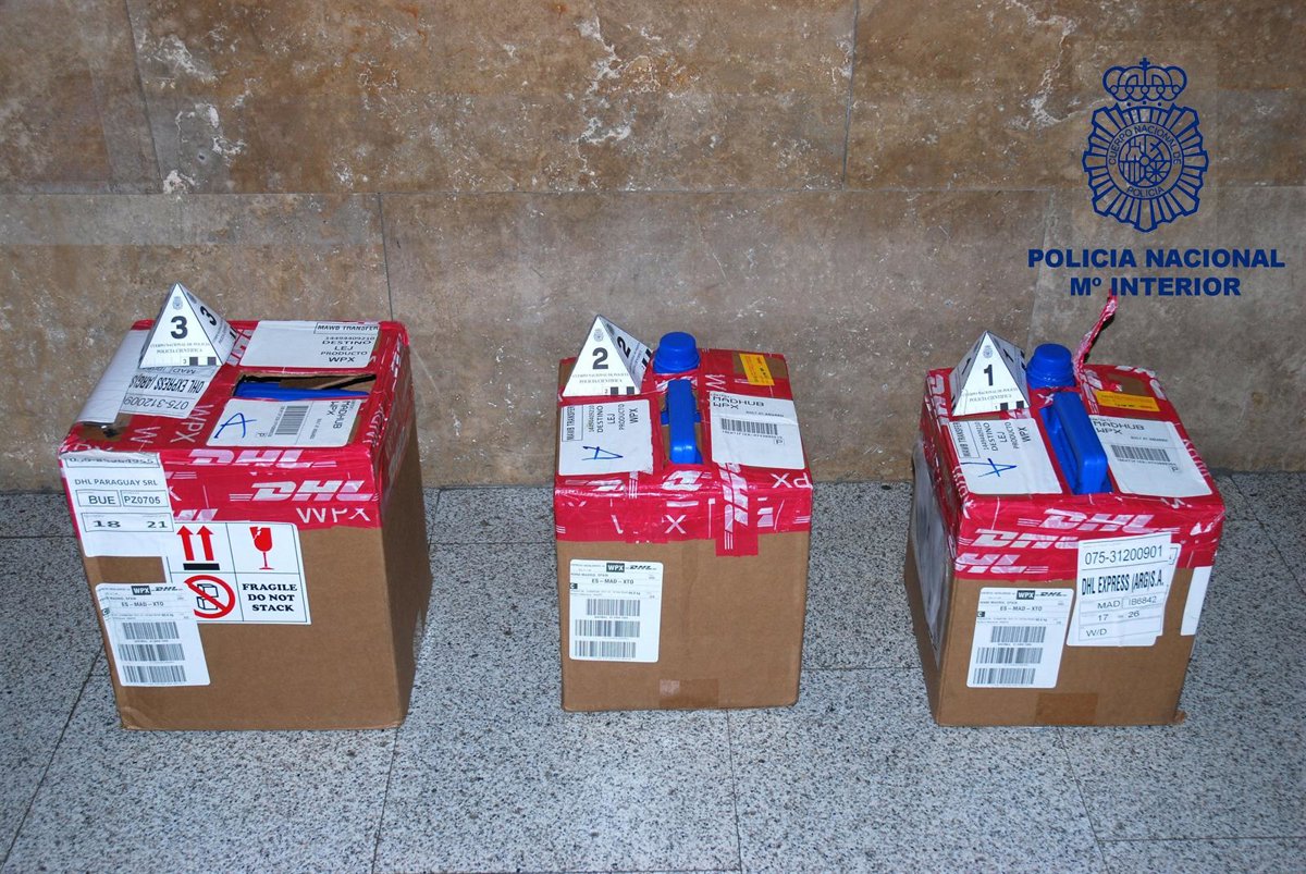 Agentes de la Unidad Regional de Vigilancia Aduanera de la Agencia Tributaria en Castilla-La Mancha, en una operación conjunta con la Policía Nacional de Toledo, ha interceptado un envío de tres bidones procedentes de Paraguay, de 22 kilogramos de capacidad cada uno, que contenían cocaína líquida y cuyo destino era un municipio de Toledo.