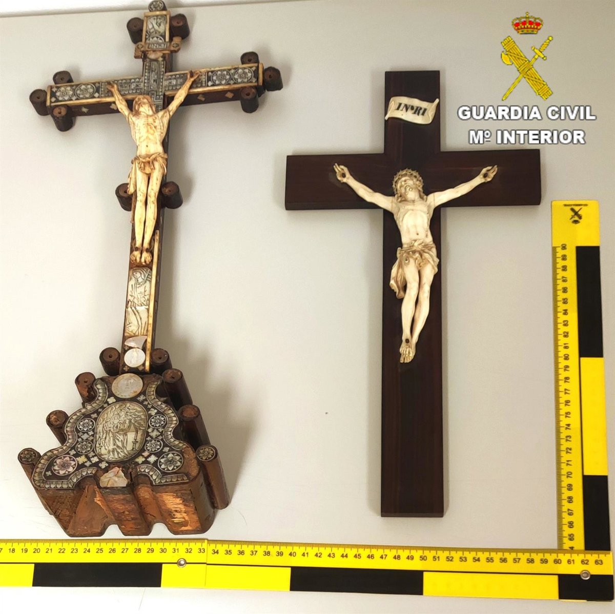 El Equipo del SEPRONA de la Guardia Civil de Cuenca ha realizado estos días una búsqueda en internet que dio como resultado el hallazgo de dos publicaciones en las que se ofertaban para la venta 'Un cristo de marfil del siglo XIX compuesto de madera, marfil y nácar' y 'Un cristo de marfil con crucifijo de palisandro'.