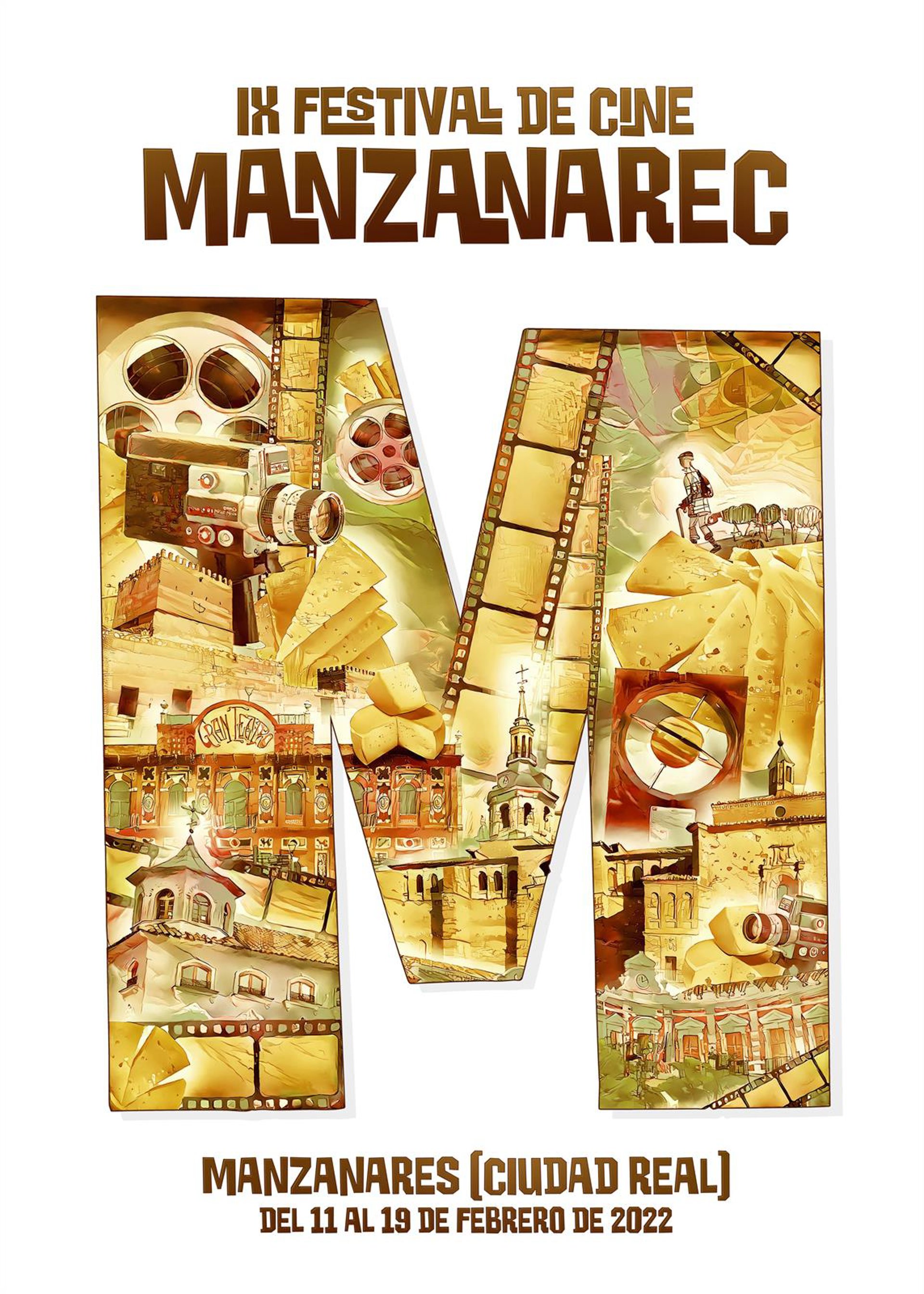 El festival de cortometrajes ManzanaREC ya ha desvelado la imagen oficial para su novena edición. El cartel presenta una gran letra 'm' inspirada en la localidad de Manzanares inmortalizando lugares emblemáticos bajo una gran cinta de cine, y juega con el color blanco del fondo y los tonos amarillentos y dorados.