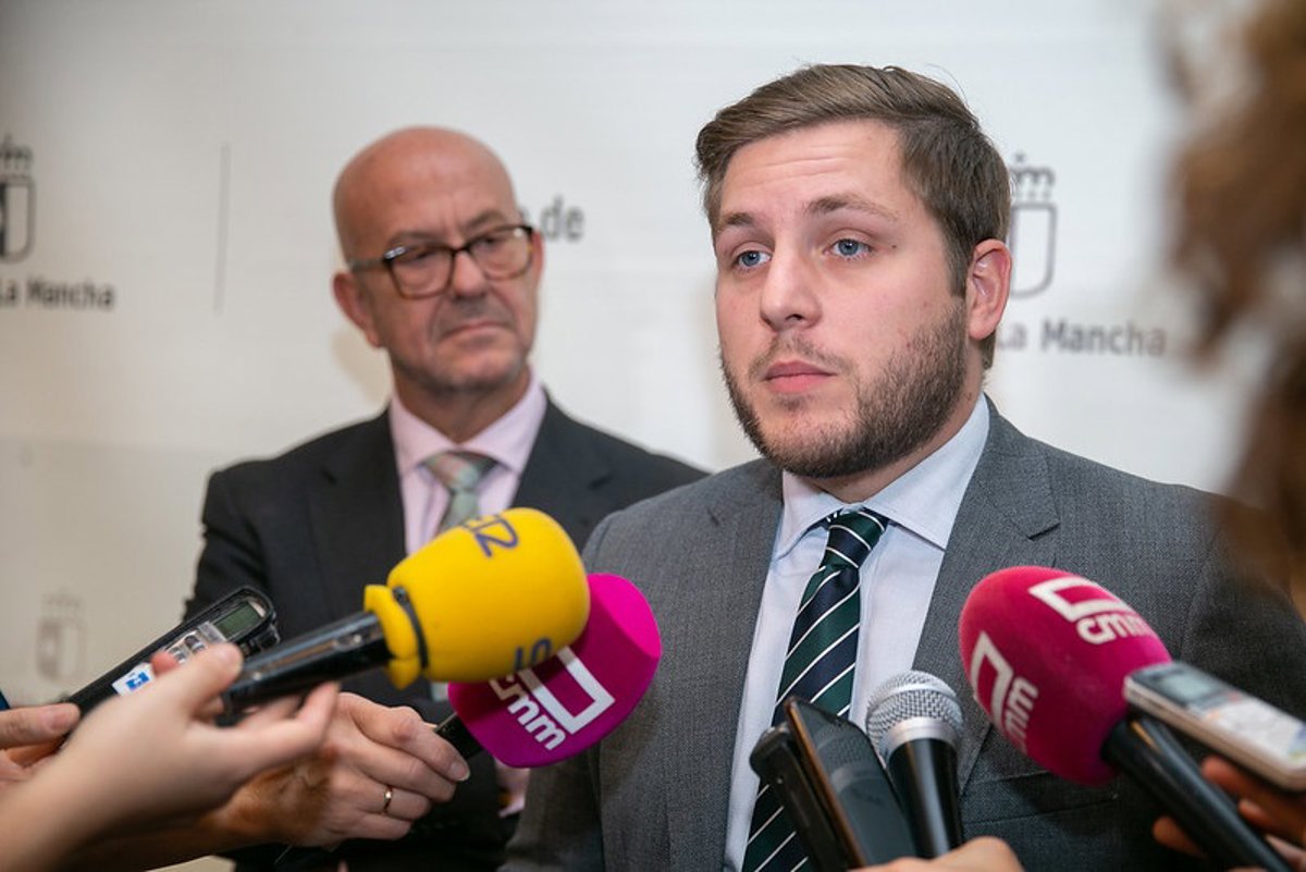 El consejero de Fomento, Nacho Hernando, atiende a los medios tras firmar un acuerdo con el alcalde de Mora, Emilio Bravo - JCCM