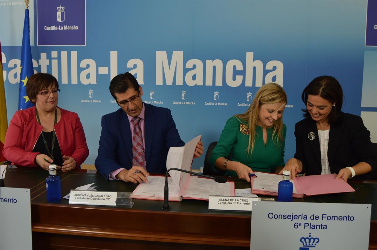 La consejera de Fomento, Elena de la Cruz; el presidente de la Diputación, José Manuel Caballero, y la alcaldesa de Ciudad Real, Pilar Zamora, han firmado este miércoles un protocolo de colaboración para la oficina de intermediación hipotecaria abierta por el Gobierno regional en las dependencias de la Consejería en la calle Alarcos.