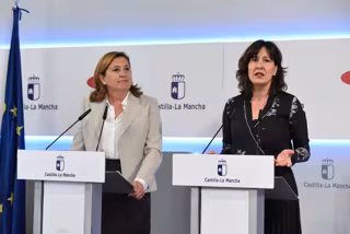 La consejera de Educación, Cultura y Deportes, Rosa Ana Rodríguez, y la consejera de Igualdad, Blanca Fernández,en rueda de prensa. - JCCM