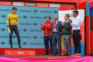El presidente autonómico, Emiliano García-Page, asiste al final de etapa de La Vuelta en Toledo - JUNTA C-LM