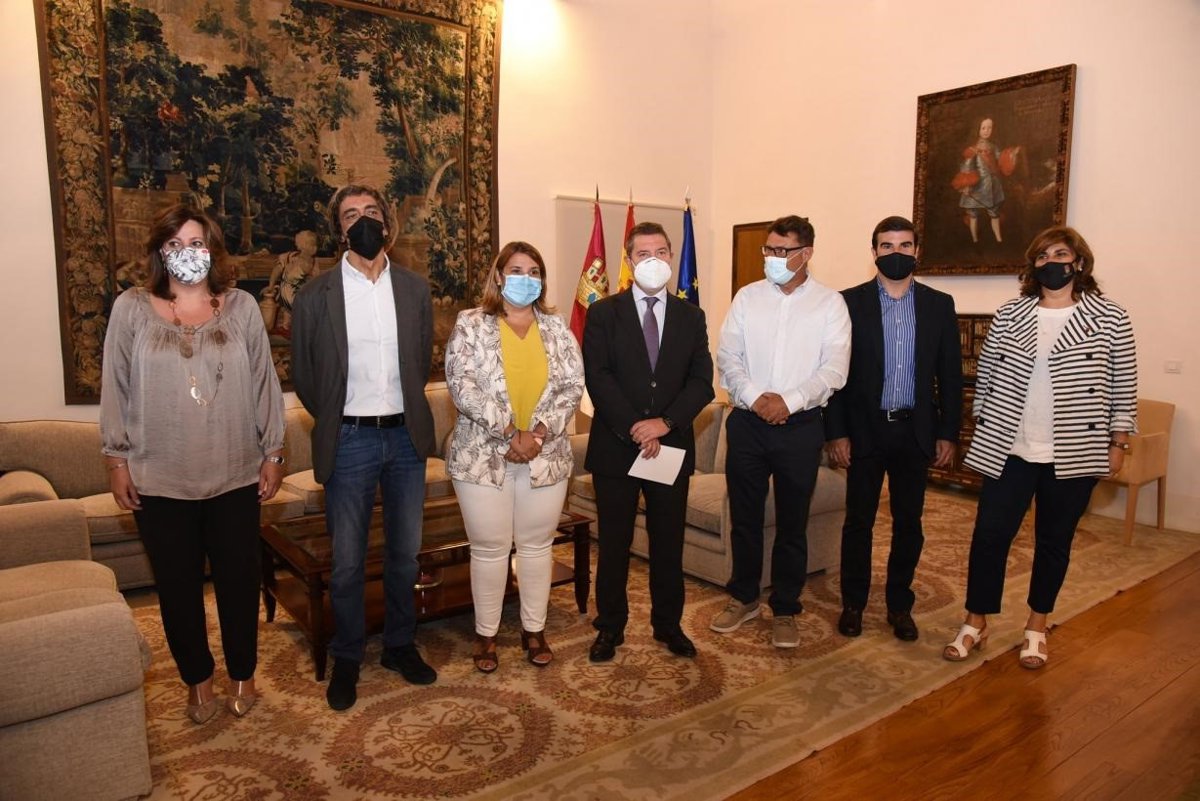 El presidente de Castilla-La Mancha, Emiliano García-Page, se reúne, en el Palacio de Fuensalida, con representantes de las empresas NYECPLAST S.L. Y SER-VIZIberica S.A - JCCM