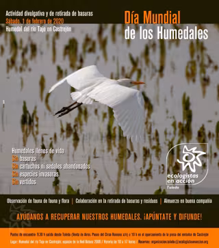 Ecologistas en Acción de Toledo va a realizar este sábado, 1 de febrero, una jornada previa al Día Mundial de los Humedales 2020, 'Los humedales y la biodiversidad', en la presa del embalse de Castrejón,