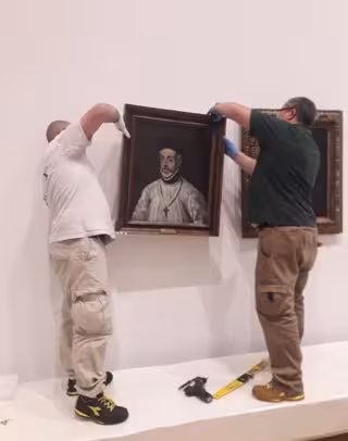 Especialistas cuelgan el 'Retrato de Diego de Covarrubias' del Greco para la exposición del Grand Palais de París - MUSEO DEL GRECO