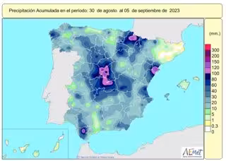 Precipitaciones acumuladas en el periodo comprendido entre el 30 de agosto y el 5 de septiembre de 2023 - AEMET