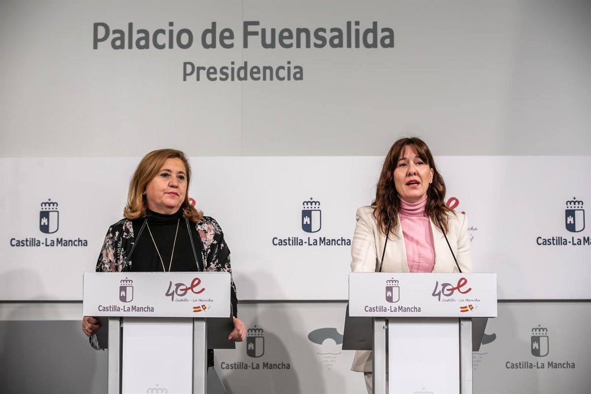 La consejera de Igualdad y portavoz del Gobierno regional, Blanca Fernández, y la consejera de Educación, Cultura y Deportes, Rosa Ana Rodríguez, comparecen en rueda de prensa en el Palacio de Fuensalida. - DAVID ESTEBAN/EUROPA PRESS