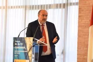 "Tenemos que buscar soluciones para que no pasen años y años". Petición que, en nombre del Ejecutivo autonómico, ha trasladado el vicepresidente regional, José Luis Martínez Guijarro, al secretario de Estado de Medio Ambiente, Hugo Morán, durante la inauguración de la Jornada 'Alto Guadiana, una responsabilidad de todos', que organiza la Confederación Hidrográfica del Guadiana en Alcázar de San Juan (Ciudad Real).